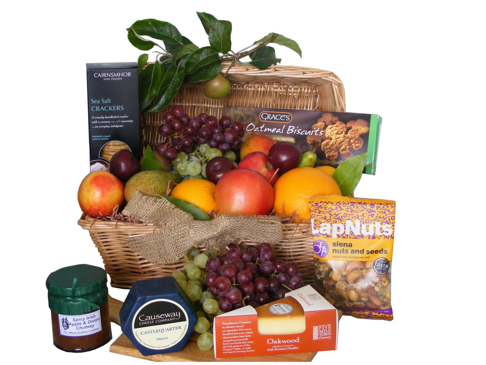 Fruit baskets are also popular as thank you gifts & sympathy gifts. We create baskets with a mixture of fresh fruit & then sweet or savoury gourmet food items to accompany them.Recent additions include our "Fruit & Cheese" Gift Basket: